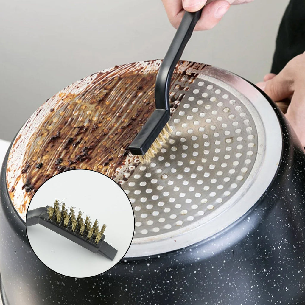 3pc Mini Wire Brush Set Brass Nylon Stainless Steel Bristles Household Cleaning Brush for Gas Stove, Smoke Machine Tool Burner Tiles Tap Rust Removal Welding Slag Dirt & Paint Scrubbing (3 Pcs Set)
