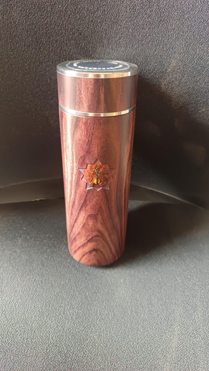Stay hydrated in style with this premium 450 ML smart flask featuring a rich wood grain finish and built-in LED temperature display. Designed for modern users, this vacuum-insulated stainless steel bottle keeps beverages hot or cold for extended hours. The digital display shows the real-time temperature of your drink with a gentle touch on the cap – no more guessing! Ideal for travel, office, or gifting, this smart bottle combines functionality with aesthetic appeal.